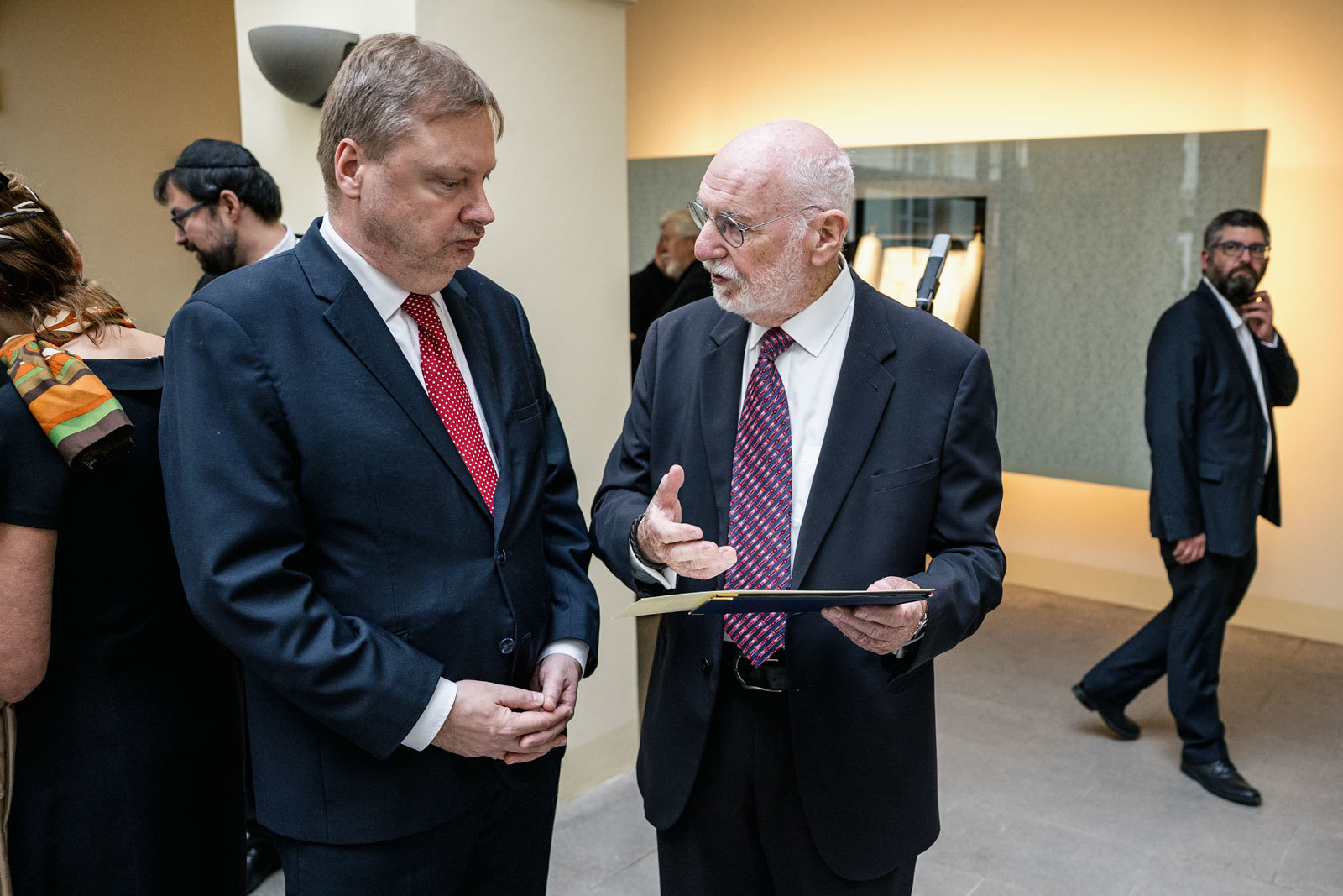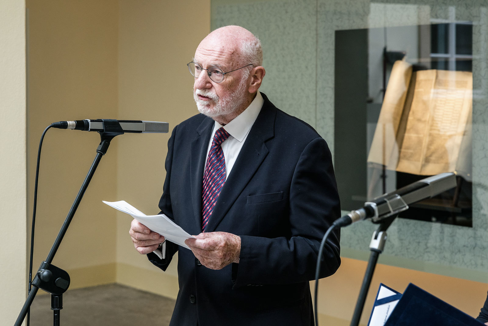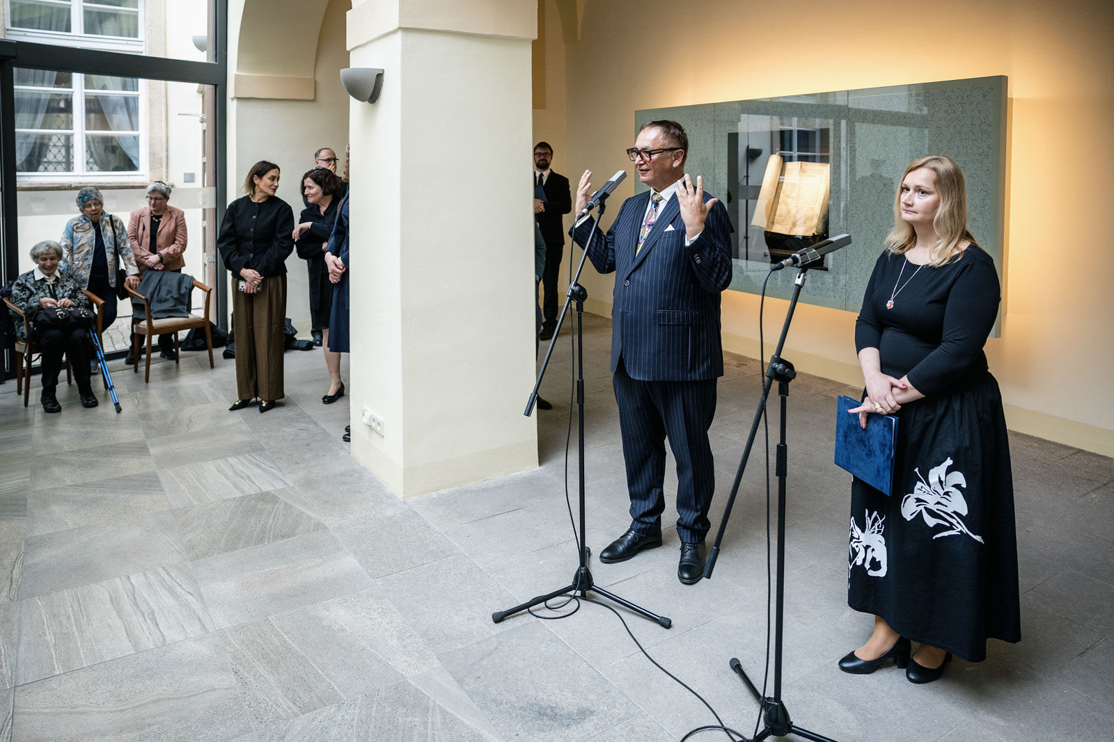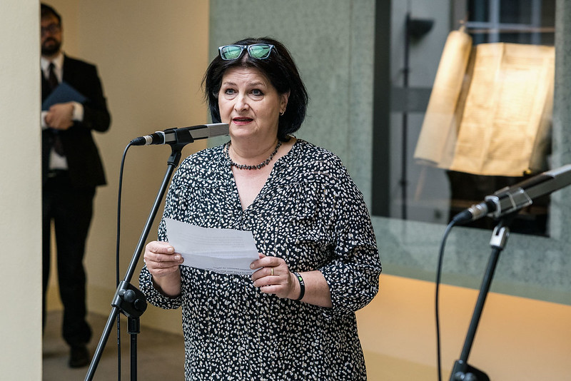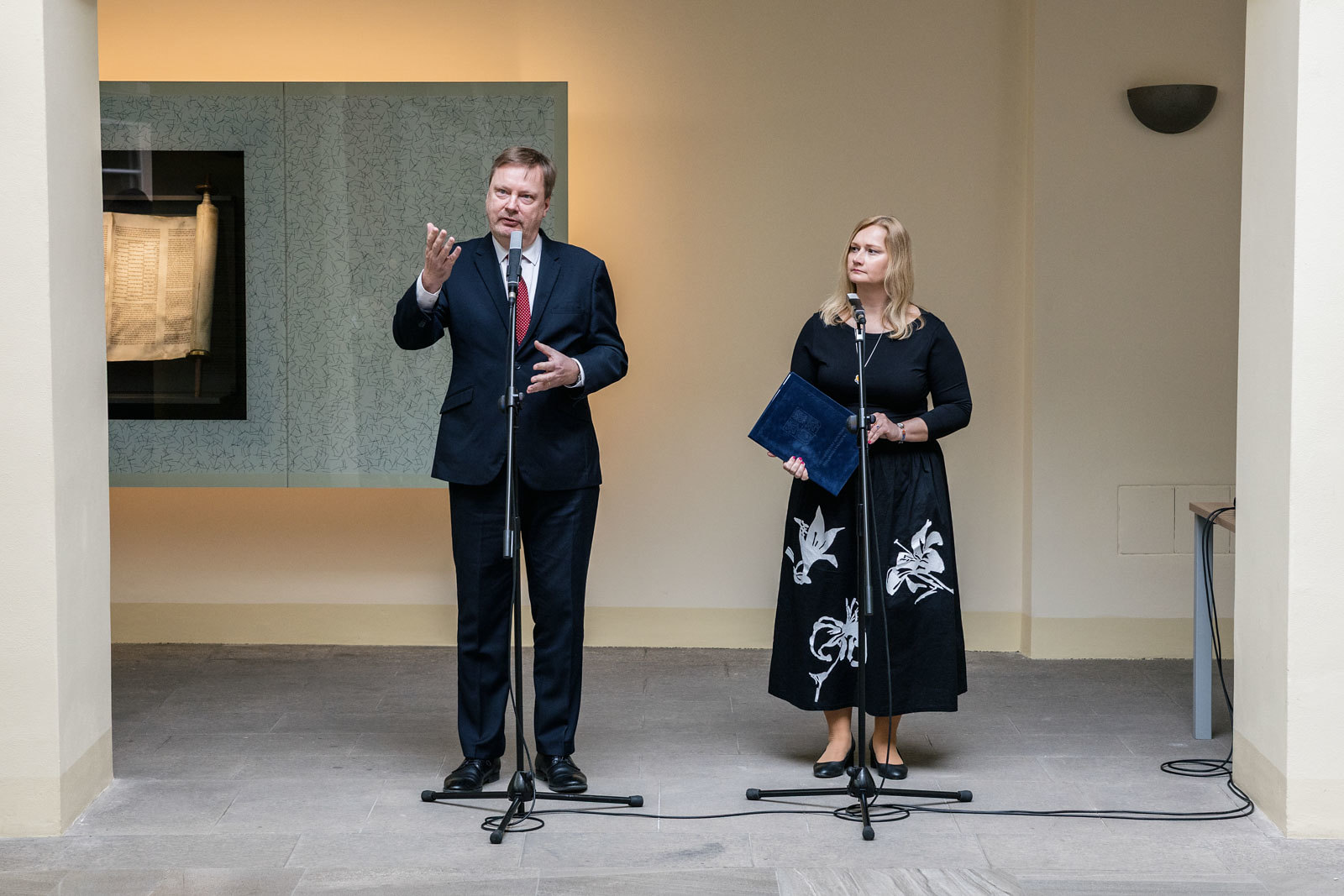 Svitek Tóry z Říčan, původně připisovaný Uhříněvsi, se dostal do Sněmovny po dlouhém úsilí dvou a půl roku. Vystavovali jsme jej spolu s příběhem záchrany před rokem a něco a nyní dostal svou trvalou schránku ve Dvoraně Šternberského paláce. V říčanské modlitebně byly kdysi tři svitky, dva jsou ještě živé a ten náš ze Sněmovny je už neživý. Máme jej jako připomínku spoluobčanů, kteří se nedožili dneška, neměli děti a nejsou po nich vnuci. A pro svět politického soupeření máme svitek jako připomínku hodnoty svobody, pro kterou je třeba usilovně pracovat. A motiv na schráně: Rozpadlá Davidova hvězda na špejličky zve k tomu, abychom ji zase složili…