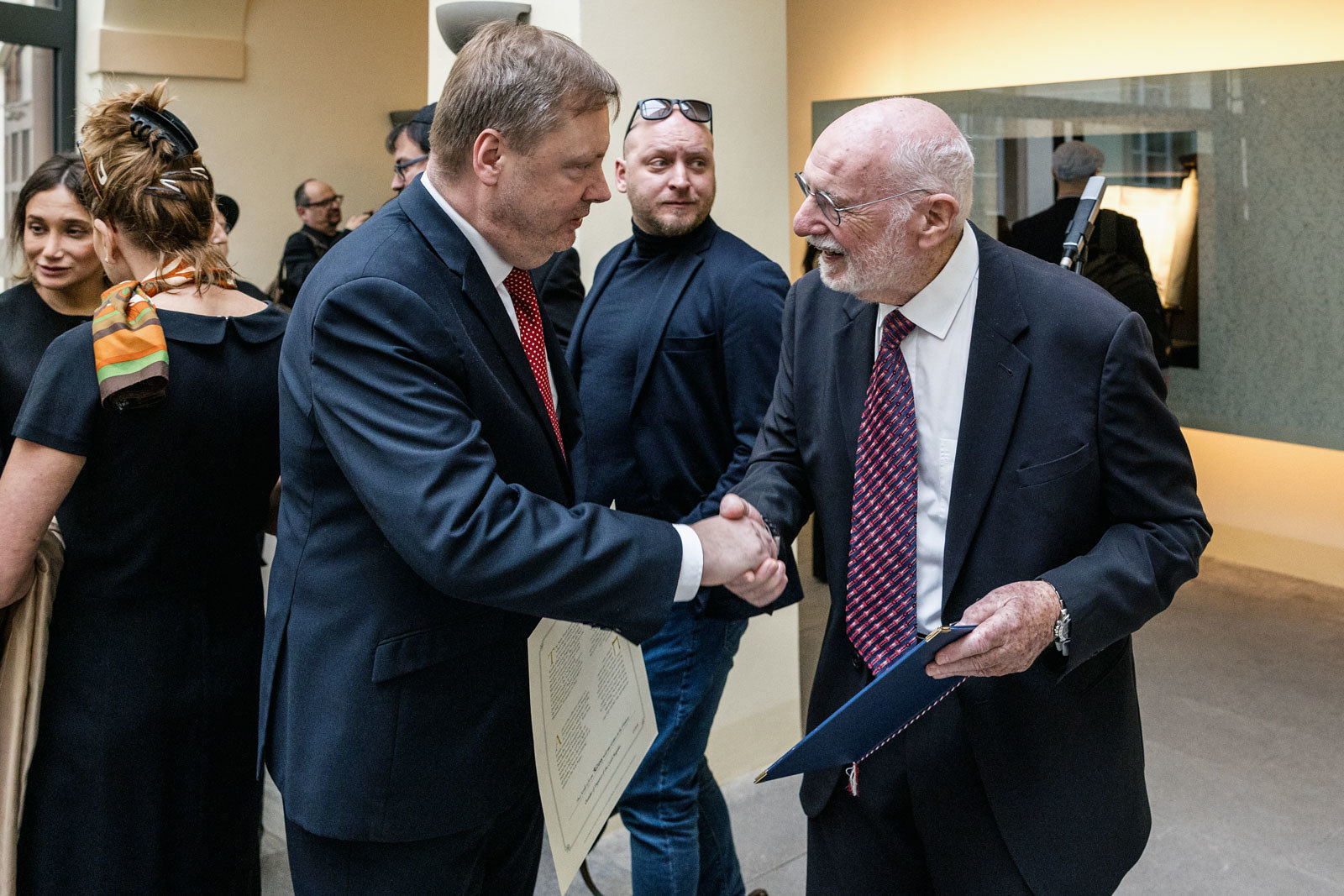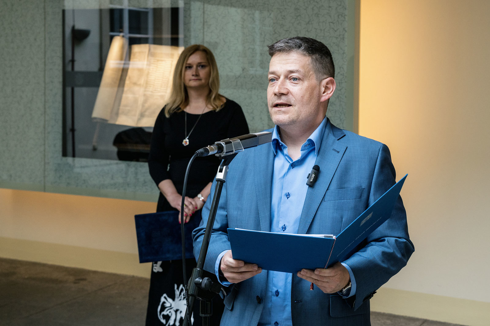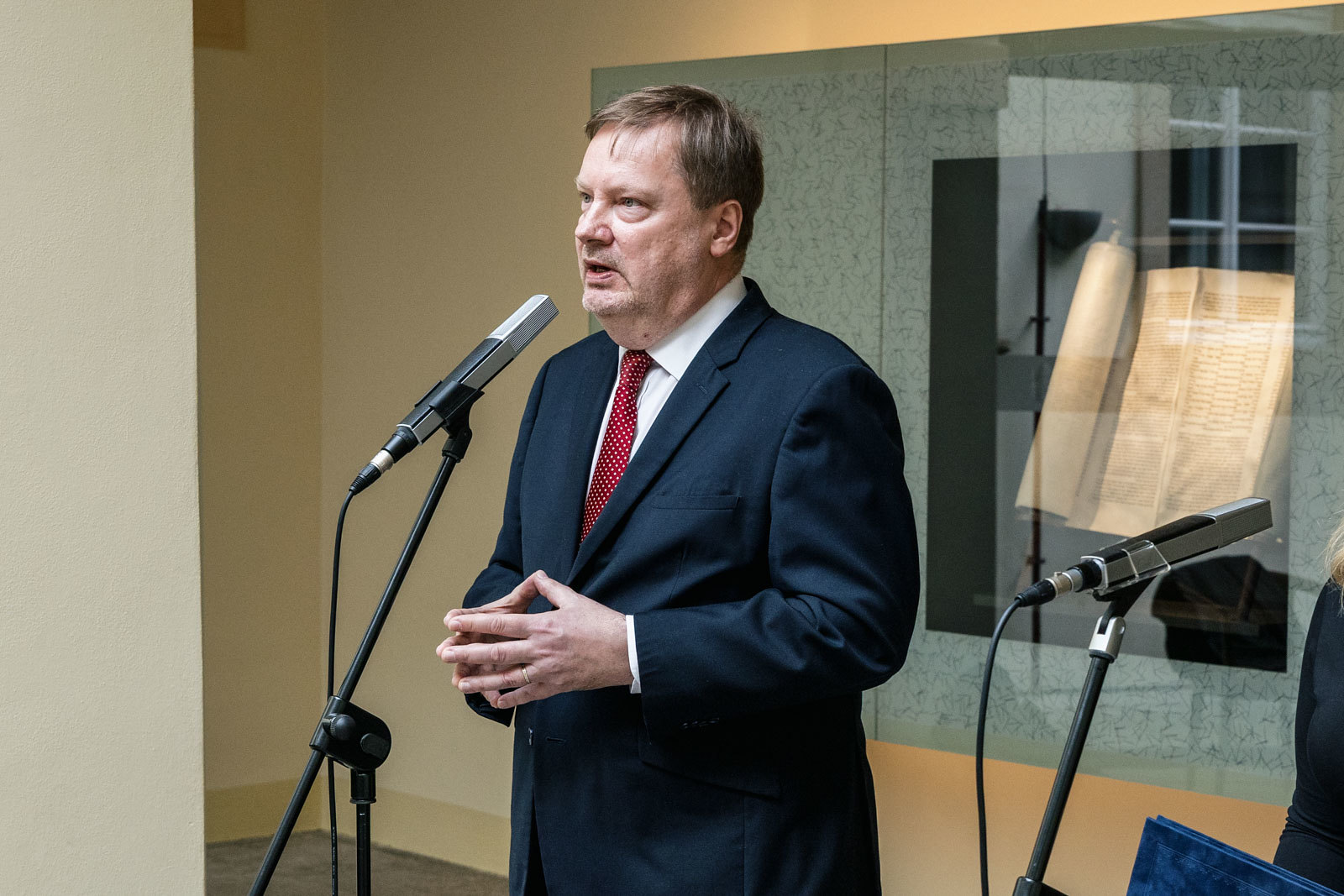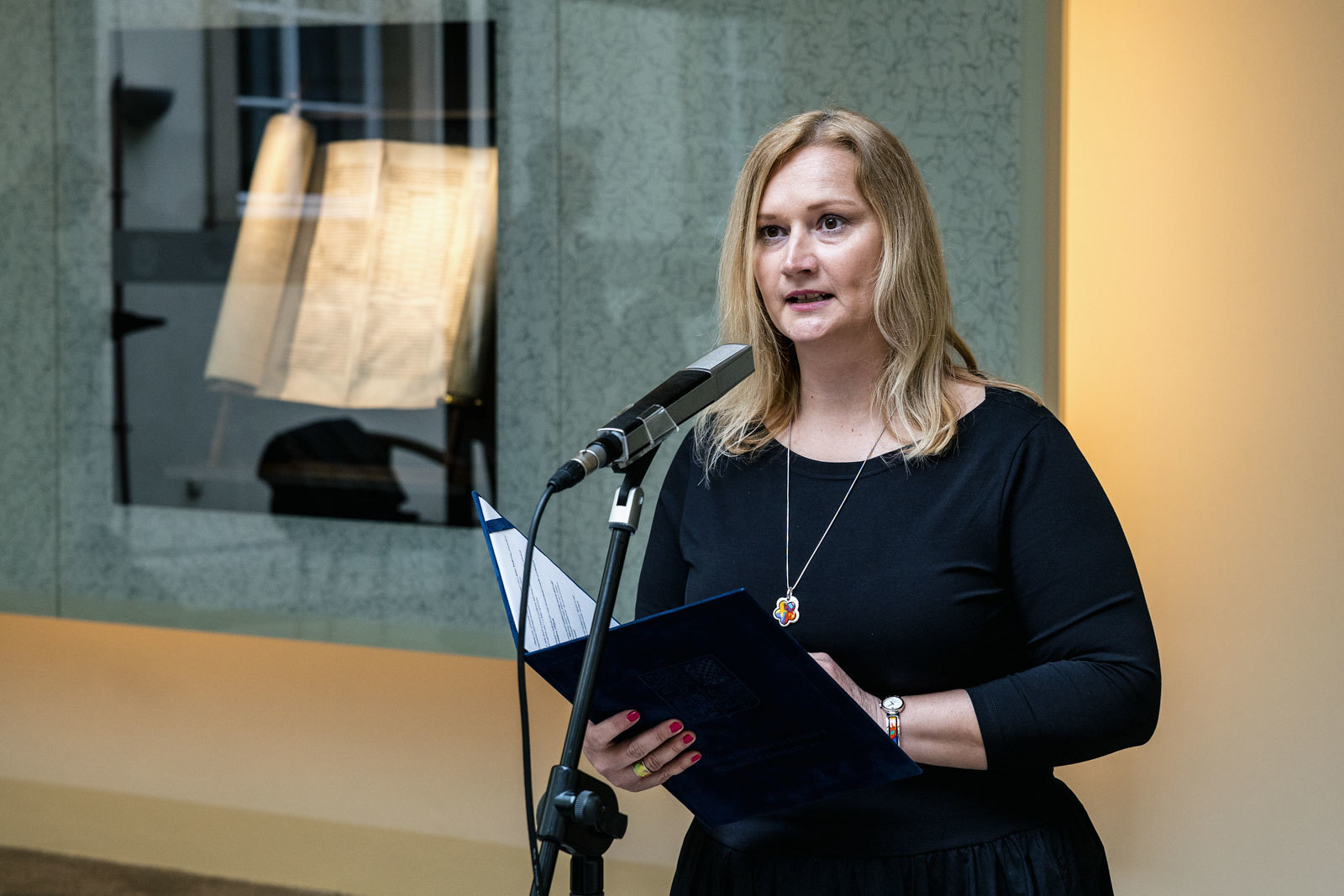 Svitek Tóry z Říčan, původně připisovaný Uhříněvsi, se dostal do Sněmovny po dlouhém úsilí dvou a půl roku. Vystavovali jsme jej spolu s příběhem záchrany před rokem a něco a nyní dostal svou trvalou schránku ve Dvoraně Šternberského paláce. V říčanské modlitebně byly kdysi tři svitky, dva jsou ještě živé a ten náš ze Sněmovny je už neživý. Máme jej jako připomínku spoluobčanů, kteří se nedožili dneška, neměli děti a nejsou po nich vnuci. A pro svět politického soupeření máme svitek jako připomínku hodnoty svobody, pro kterou je třeba usilovně pracovat. A motiv na schráně: Rozpadlá Davidova hvězda na špejličky zve k tomu, abychom ji zase složili…